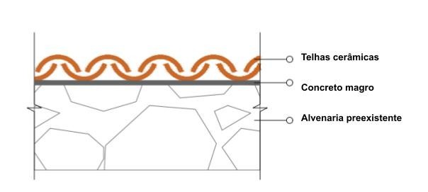 Em alguns segmentos da construção, no entanto, não foi possível instalar as telhas cerâmicas. Nesses pontos, a equipe executou um cintamento superior em concreto magro, com espessura entre 5 e 7 centímetros. A mistura recebeu um aditivo impermeabilizante sintético, que garante a proteção contra a água sem comprometer a respirabilidade do material histórico.
