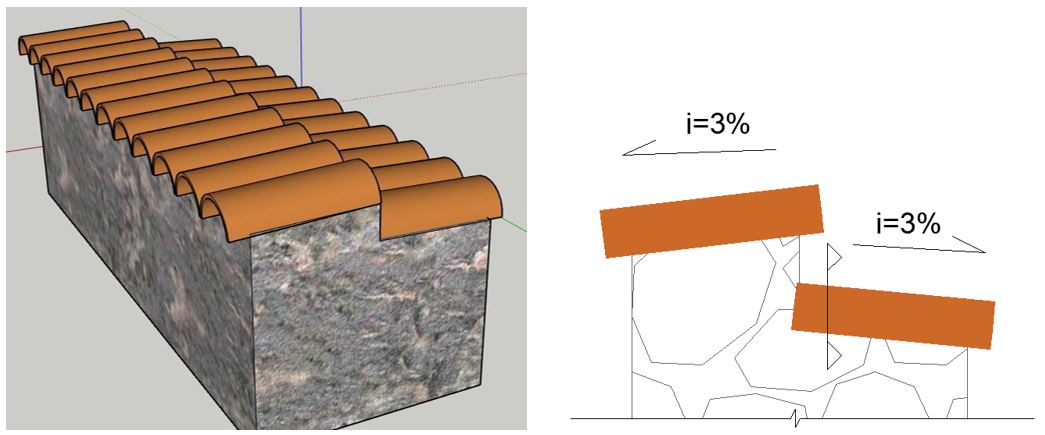 Desenho Esquemático – acabamento com telhas no topo alvenaria
